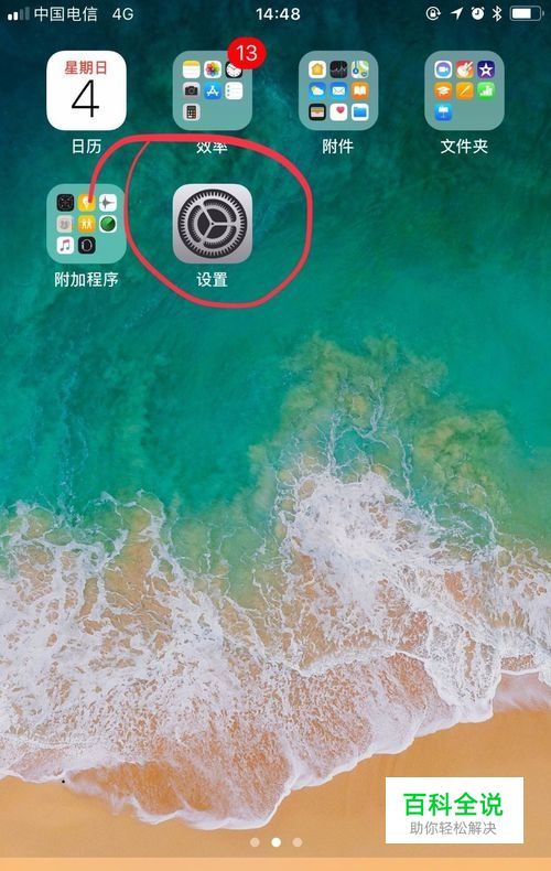 打开iPhone手机,找到桌面“设置”图标。如图