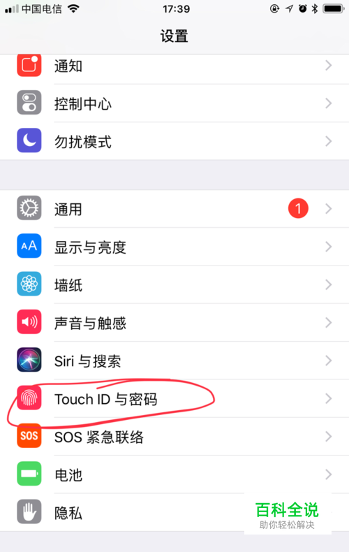 点击“设置”进入到设置界面,在设置功能列表中可以找到“Touch ID和密码”功能。如图