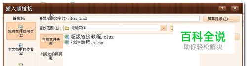 “现有文件或网页”中可以插入本地电脑的中的文件,使Excel中的文件名与本地电脑中的相关文件关联起来;也可以插入互联网的地址。
