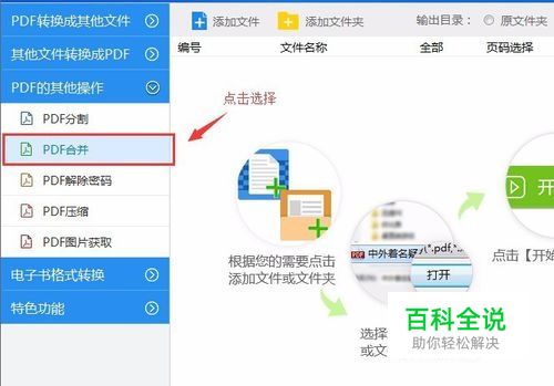 然后运行该软件,在软件界面的左侧菜单栏中点击“PDF的其他操作”中的“PDF合并”选项。