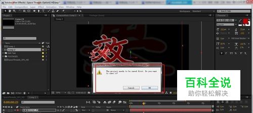 在使用AE源文件打包的功能之前,我们要对AE源文件进行保存,如果没保存的话,打包功能会提示我们保存。