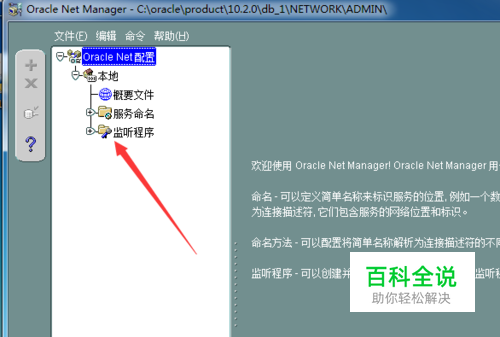 进入到了“net manager”之后,进行选择为oracle net配置中的的监听程序。