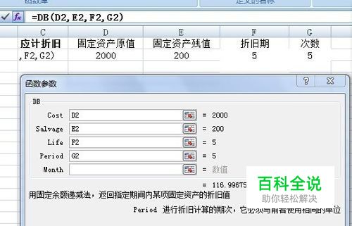 四、输入函数。如图所示,在DB函数对话框中分别输入相应数据。