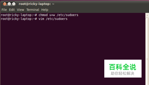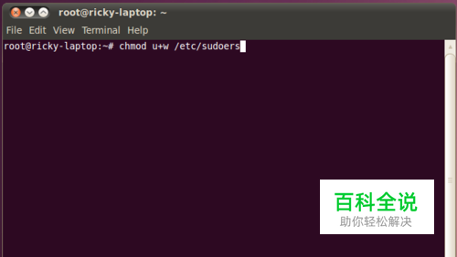 添加文件的写权限: 输入命令“chmod u+w /etc/sudoers”