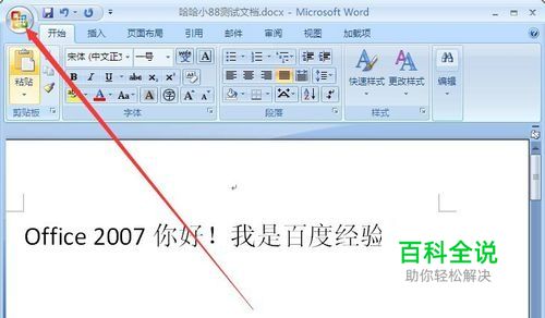 在打开的word文档左上角,找到“office 按钮”,鼠标移动到“office 按钮”并点击“office 按钮”。