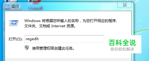 首先通过快捷键Windows+R打开运行对话框,输入regedit命令,如图所示: