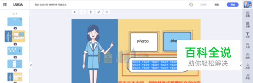 双击文字内容,文本框中变成蓝色,删除文字之后输入自己想要的文字内容。