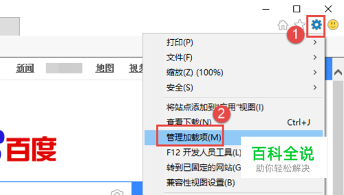 打开IE浏览器,点击右上角的齿轮,选择“管理加载项”。