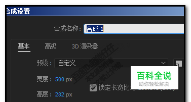 我们启动软件; 进入到软件操作界面,新建黑色背景合成。合成大小是500X282