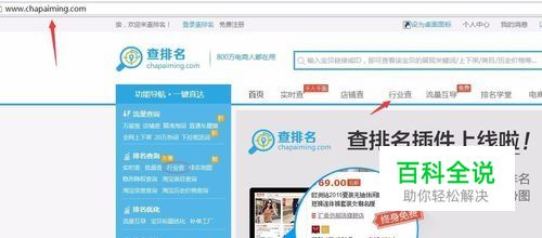 一、打开浏览器,进入查排名 找到行业查功能;