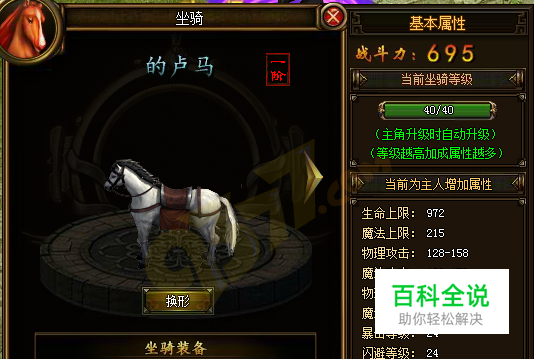 在9377魅影传说游戏中,骑乘坐骑可提升角色的移动速度,在抢东西和打怪时可快速移动。但进入游戏后都没看到有坐骑系统,其他玩家又有骑乘。魅影传说坐骑究竟是怎么获得的呢要达到几级才能开启坐骑系统。魅影传说坐骑在玩家角色等级达到28级时开启,玩家需完成“诛杀山大王任务”后才会自动开启坐骑系统,系统赠送的卢马一匹,它可以通过进阶升级为更高级强大的坐骑,是你往后赤焰旅途中忠实可靠的小伙伴。 拥有坐骑后便可骑乘该坐骑,骑乘坐骑可将移动速度加快,坐骑还可给角色增加属性值,增加的属性值有生命上限、魔法上限、物理攻击、魔法攻击、物理防御、魔法防御、暴击、闪避、固定伤害等,坐骑等级越高,可增加的属性值就越高。角色等级升级时,坐骑会自动升级,但坐骑等级不能超过当前品阶等级上限。 坐骑还可佩戴装备,共有五个,分别是蹄铁、马鞍、缰绳、护甲、马镫,装备越高级,给坐骑增加的战力值就越高。坐骑还可进阶,进阶成功可获得更炫酷的坐骑外形,坐骑一共十阶,每提高一阶能给人物角色提高大量属性。