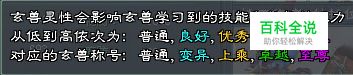 玄兽按资质、成长、灵性来区分。颜色不同属性也不同,由低到高分别为白色,蓝色,黄色,绿色,紫色。