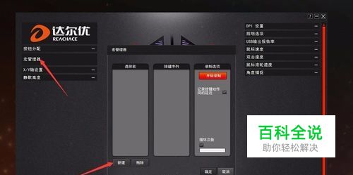 点击鼠标驱动界面左侧的宏设置,然后点击新建建立一个宏文件名。
