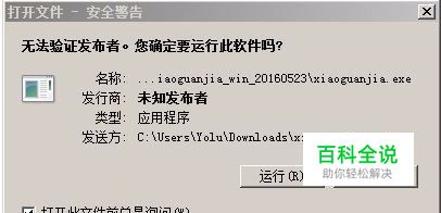 双击xiaoguanjia.exe,如果有图中的报警,不用管它,点击运行