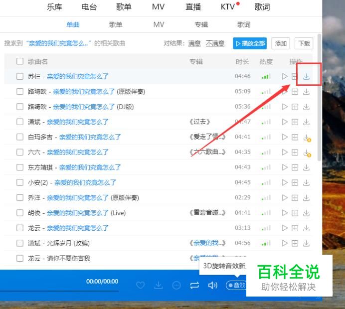接下来,在搜索结果页面中,选中要下载的歌曲文件,点击“下载”按钮。