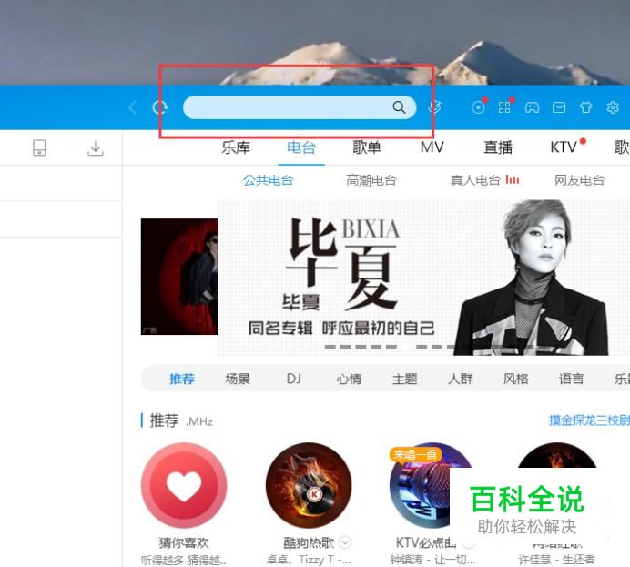首先,打开酷狗音乐软件主页面,点击软件主页面顶部的搜索框,在搜索框中输入要下载的歌曲文件。