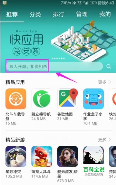 我们打开手机的市场应用,如图。
