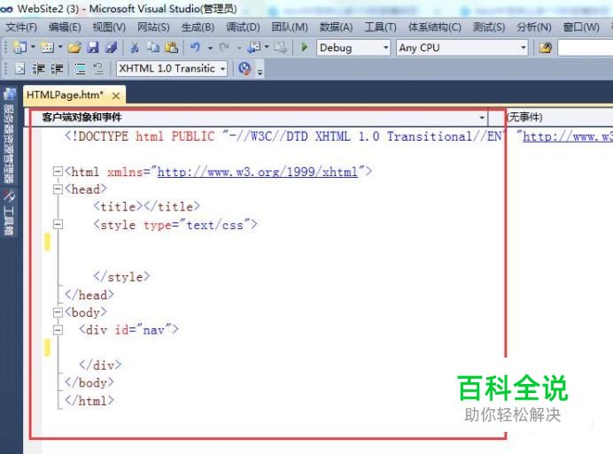 HTML页面 使用Visual Studio软件新建出一个HTML页面,如下图所示: