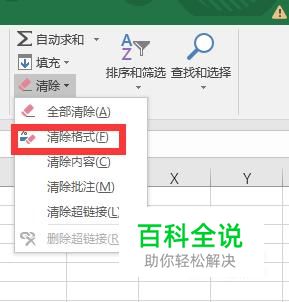 清除标签下有着许多的清除选项,比如:全部清除、清除格式、清除内容等,我们选择清除格式就只是清除了单元格的格式。