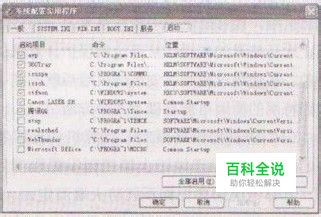 此时可执行【开始】丨【运行】命令, 在弹出的对话框中,输入misconfig,弹出【系统配置实用程序】对话框,选择【启动】选项卡,选择不需要开机启动的程序,如图所示