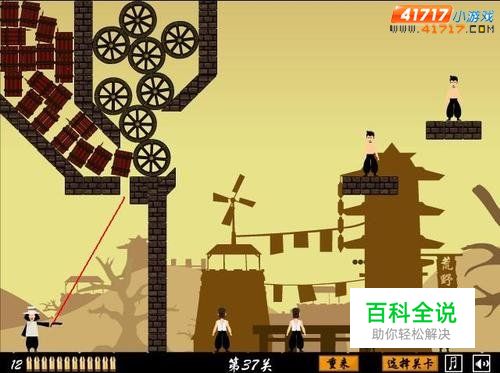 第37关,可以朝着红线方向连续射,也可以过关