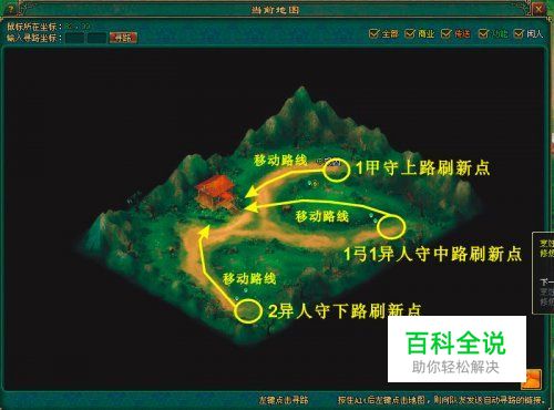 金钹之怒 接金钹之怒任务条件 等级:大于等于45 人数:大于等于3个人 附带要求:完成慧眼识兔得到的人参1个 任务次数:每日限做5次 任务攻略 金钹之怒任务的要求就是要你进去副本之后杀死真正的BOSS。在副本里面会有6个BOSS,但6个BOSS里面只有一个是真的。这任务不像兔子那样名字写着真假,你必须要让他打或者打他才知道是真假。判别真假的方法就是真正的BOSS会远程攻击,你打他可以看见他的血条在减少。如果是假的BOSS他只会跟着你和你肉搏,并且你打他发现他血条没减。过这任务的方法最好队伍先指定一位队员去判别真假BOSS,其他人贴着墙等待。判别的队员当然是甲士最好了,发现真的BOSS就记住它的位置,跑到出口处再进副本,放心出去不会任务失败。再次进入副本就拉住真的BOSS,把它拉到队员处一起群殴。以下为任务图解:BOSS位置 各队员站位图示