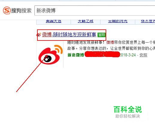在搜狗搜索引擎中输入关键词“新浪微博”