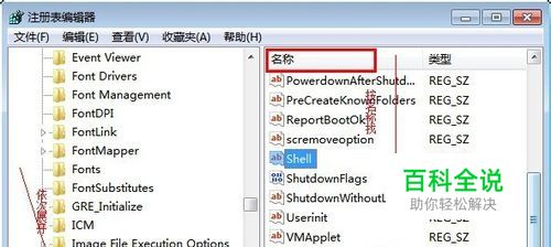 进到注册表编辑器后依次展开HEKY_LOCAL_MACHINE\SOFTWARE\Microsoft\WindowsNT\CurrentVersion\Winlogon,然后在窗口右侧根据名称找到Shell项,如图: