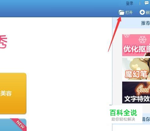 打开美图秀秀,然后直接点击右上角的打开,将要排版的图片点击选择进来,如图所示,可以对其尺寸进行适当地修改一下。