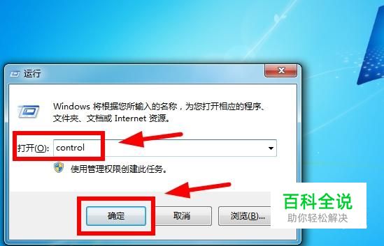 按住“Windows + R”键,弹出运行窗口,输入“control”进入控制面板,点击“确定”