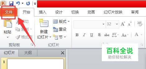 进入PowerPoint,软件界面如图所示,我们点击界面左上角的"文件"。