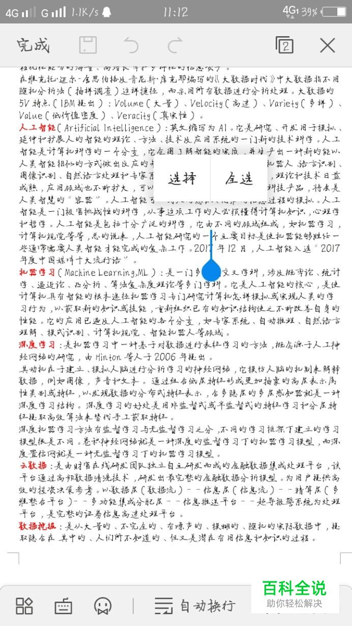 如果觉得上述步骤2太麻烦,可以选择到编辑界面,长按屏幕,就会出现“全选”的选项。