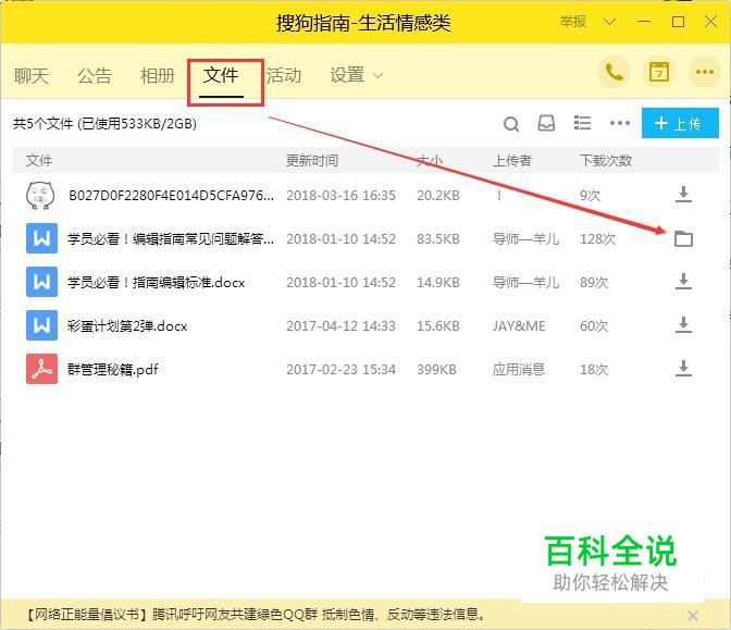 打开QQ群,点击文件,找到已下载文件后面的文件夹图标