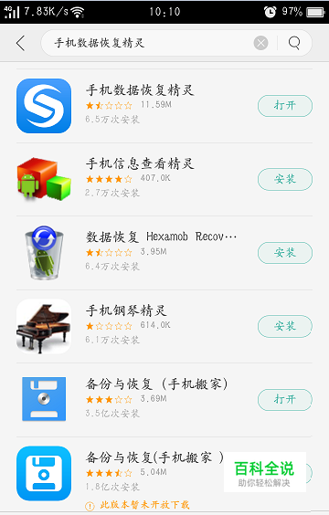 在打开的手机应用中我们就可以搜索到有关手机的第三方恢复软件了,任意下载一款应用程序来在我们的手机中进行恢复操作。