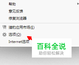 首先,我们要把我们的浏览器自带的默认的下载设置成迅雷下载就可以了,首先,我们点击浏览器的选项。我这里是猎豹,但是不同的浏览器的设置都是一样的。