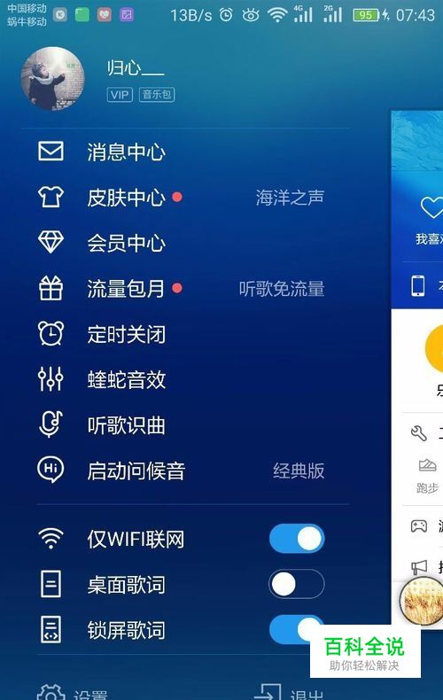 首先打开音乐播放器,来到播放器首页,然后向右滑动屏幕,弹出设置菜单