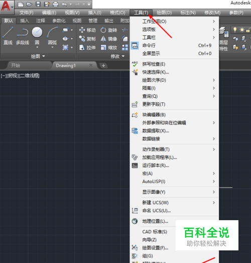 首先,我们打开CAD,点击菜单栏工具选项中的自定义,具体位置如下图所示。
