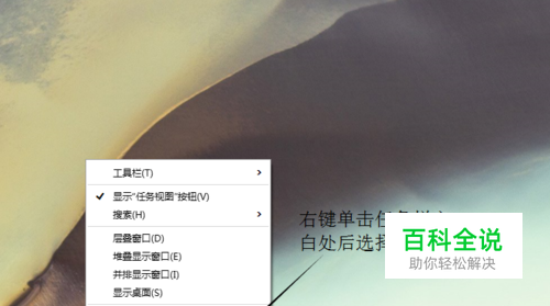 首先我们在桌面任务栏的空白处单击鼠标的右键。