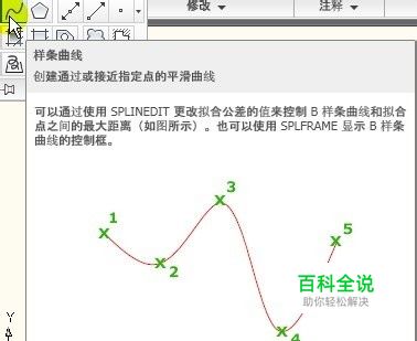 AutoCAD样条曲线工具的使用方法,快捷键为spl
