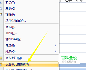 如果说你的excel版本找不到这个自动换行符的话,可以选中单元格鼠标右击弹出菜单依次选中设置单元格格式。