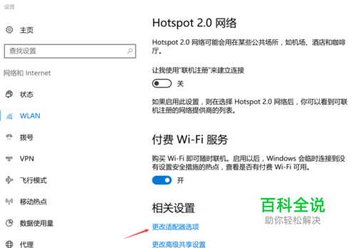 拉到最下面,选择 更改适配器选项 ,看到 WLAN图片,右击打开-属性。