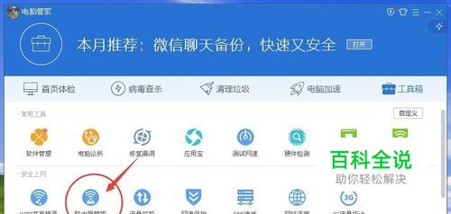 在右下角找到电脑管家实时防护,点击打开,然后再点击工具箱,可以 看到有路由器管家。