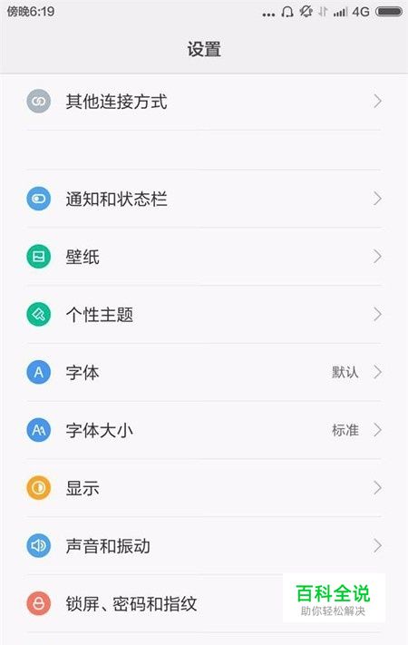 设置字体大小。主屏设置好了,菜单的字体也要设置。进入主界面,设置→系统设置→字体大小→巨无霸。
