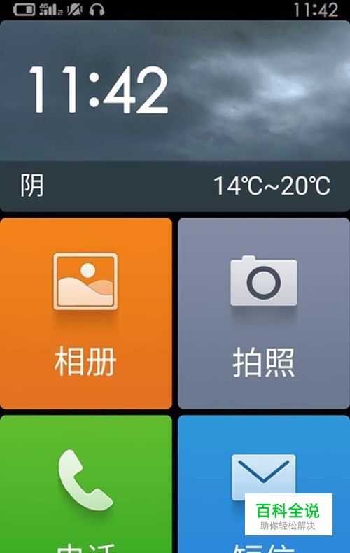 设置极简模式。极简模式又叫老人模式。进入主界面,设置→极简模式→开启极简模式,而后手机将重启。极简模式的主屏用大图大字代替了小图标和标准字体,方便了老人使用。