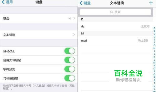 1、文本替换 小编自从get了这个超级方便实用的功能之后,感觉整个人的生活质量都提升了一大截。有很多我们日常打字出现几率很多的文字,都可以用【文本替换】这个功能实现快速输入。比如手机号码、家庭住址、公司地址等等……找到【设置】-【通用】-【键盘】-【文本替换】,其实它就是用户手动输入的联想词,本来一长串的文字,用几个单词就代替了,节省了打字时间,也提高了效率。