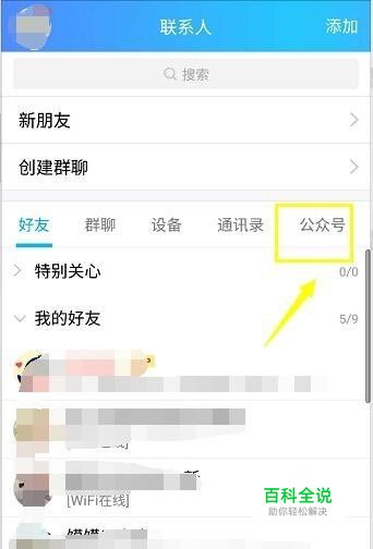 在联系人界面点击公众号,如下图所示