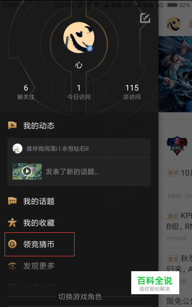 打开app后,点击首页左上角滑出弹窗,点击领取竞猜币