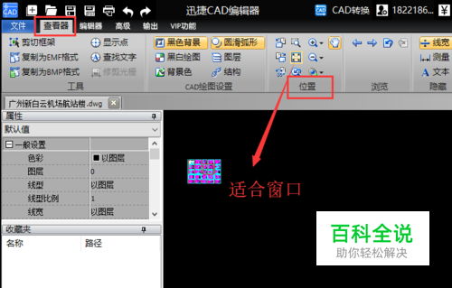点击“适合窗口(使图形适合可视区域成比例缩放)”选项之后,就可以查看到CAD图纸在编辑器中以及居中显示了,下面就可以查看CAD图纸了。