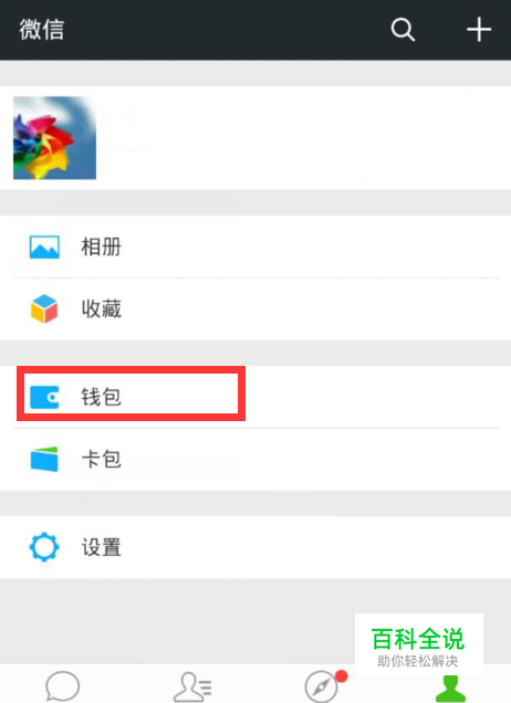 首先我们先登录我们自己的微信账号,登录成功之后先进入到“我”的控制面板,然后会看到面板上有一个“钱包”按钮,单击该按钮。