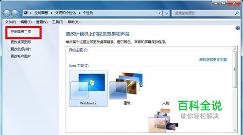 在个性化页面,点击控制面板主页!如下图所示